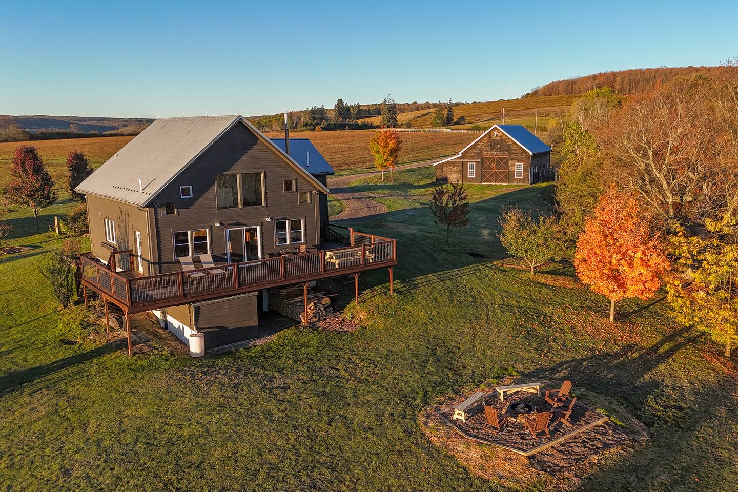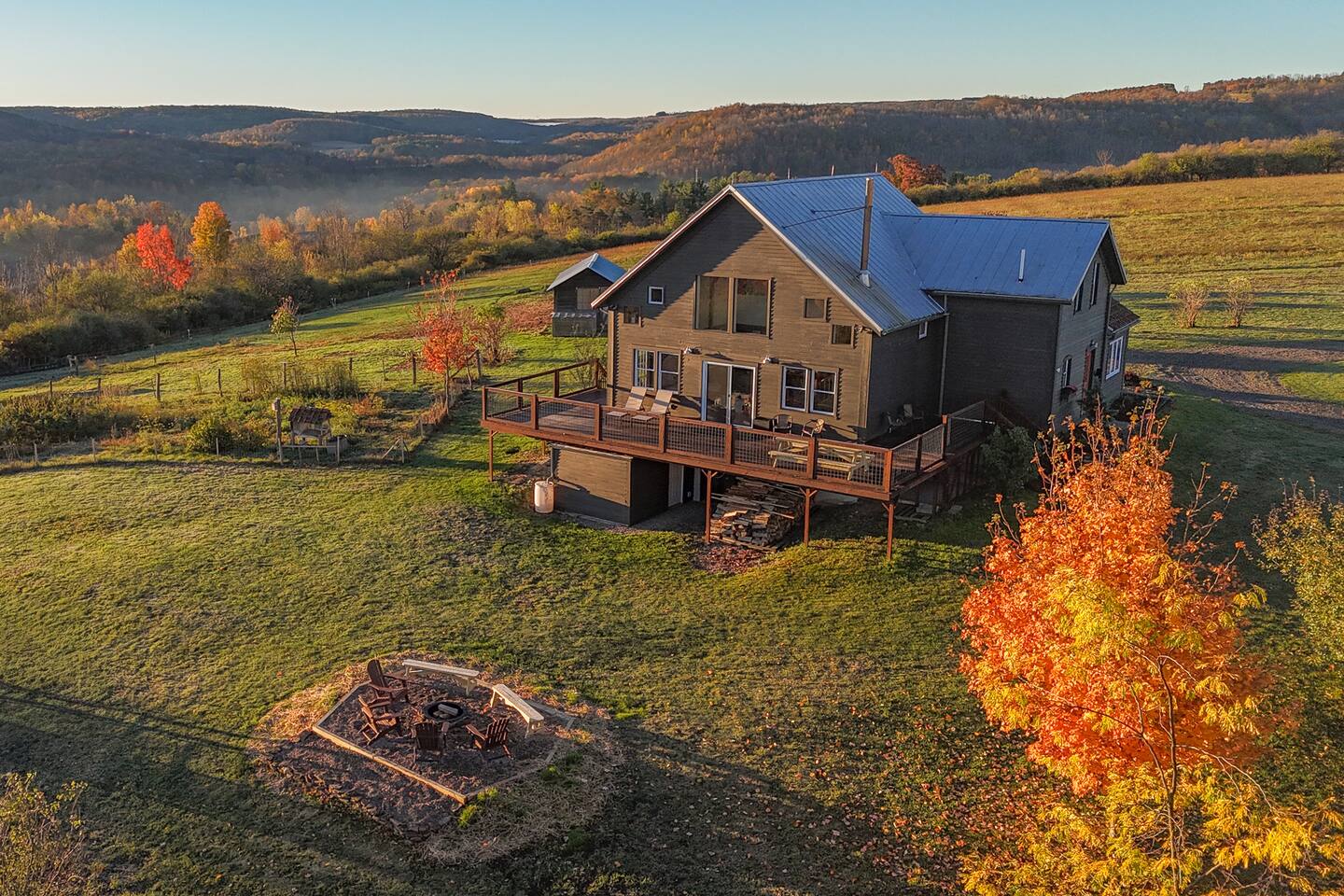 Set on the highest point of Alfred, just 5 mins from Alfred U and State, and 1 hr to Watkins Glen and Letchworth State Park, enjoy the beauty and solitude of this 20 acre country estate. Enjoy 360-degree hilltop views, tell stories by the firepit and host unforgettable gatherings, while the childen play the arcade games, board games and watch DVDs. Sit by the woodstove and read your favorite book. Relax on the deck, sip your coffee & watch the birds flutter. Create timeless memories.